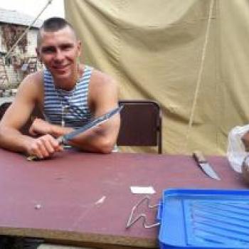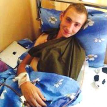 На даний момент йому зробили операцію на легені, витягнувши 2 осколки. Залишився ще один осколок у першому позвонку, через це, наразі, він не відчуває ніг. У нього поранення живота, задіті внутрішні органи, зломані два ребра.