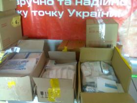 Волонтерка ініціативи "Герої АТО" Ольга Фещенко отримала посилку із м. Щастя для опікового центру для поранених бійців із зони АТО.