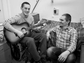 Відтак, у маленькій лікарняній палаті тепер займаються музикою два справжніх чоловіки і горять їхні очі життям під звуки струн гітари! Дуже тішить, що Юрій відгукнувся (безкоштовно надає уроки гри) та оцінив здібності Макса.